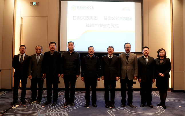 石培文董事長代表集團(tuán)公司在簽約儀式上致辭,他說,甘肅公航旅集團(tuán)2011年1月組建以來,以公路促民航、交通帶旅游,高站位、大格局、快節(jié)奏發(fā)展壯大,已成為甘肅高等級(jí)公路建設(shè)、通用航空發(fā)展、文旅產(chǎn)業(yè)開發(fā)、投融資平臺(tái)建設(shè)等領(lǐng)域的領(lǐng)頭雁、排頭兵,對(duì)推動(dòng)甘肅經(jīng)濟(jì)社會(huì)發(fā)展,作出了巨大貢獻(xiàn),也為省屬企業(yè)發(fā)展作出了示范,樹立了標(biāo)桿,是甘肅文旅集團(tuán)學(xué)習(xí)的榜樣和追求的目標(biāo)。與甘肅公航旅集團(tuán)簽約,是甘肅文旅集團(tuán)與省屬企業(yè)簽署的第一份戰(zhàn)略合作協(xié)議,對(duì)于文旅集團(tuán)來講,是與巨人握手,向高人借力,意義十分重大。