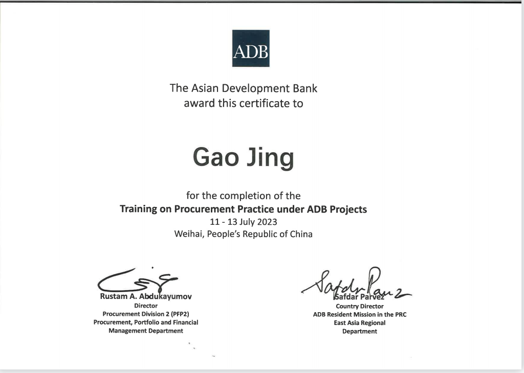 此次培訓(xùn)重點(diǎn)對亞行采購政策、合同管理與合同計(jì)劃、亞行財(cái)務(wù)盡職分析要求、項(xiàng)目會計(jì)核算、項(xiàng)目財(cái)務(wù)報(bào)表、項(xiàng)目審計(jì)等主題進(jìn)行授課。通過演講、案例研究、小組討論、結(jié)業(yè)測試及經(jīng)驗(yàn)豐富的執(zhí)行機(jī)構(gòu)分享經(jīng)驗(yàn)等方式使參訓(xùn)人員加深了解亞行貸款采購、財(cái)務(wù)政策/規(guī)定并拓展實(shí)踐知識。甘肅文旅集團(tuán)國際金融組織貸款項(xiàng)目管理辦公室一名同志代表亞行貸款甘肅環(huán)境可持續(xù)鄉(xiāng)村振興與發(fā)展項(xiàng)目作了大會交流發(fā)言,分享了項(xiàng)目管理工作中的經(jīng)驗(yàn)和關(guān)注點(diǎn)。培訓(xùn)授課結(jié)束,三名參訓(xùn)人員獲得了結(jié)業(yè)證書。